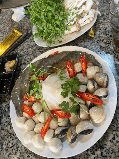 Ngoài gà H'Mông và trâu núi, Trâu Núi Gà Đồi còn phục vụ các món hải sản tươi sống vô cùng hấp dẫn. Các món cá tươi, ốc, tôm, mực tại đây luôn được chọn lọc kỹ càng, đảm bảo tươi ngon, chế biến nhanh chóng để giữ nguyên hương vị tự nhiên. Hải sản tại quán thường được chế biến theo các món hấp, nướng, xào, tùy theo sở thích của thực khách.