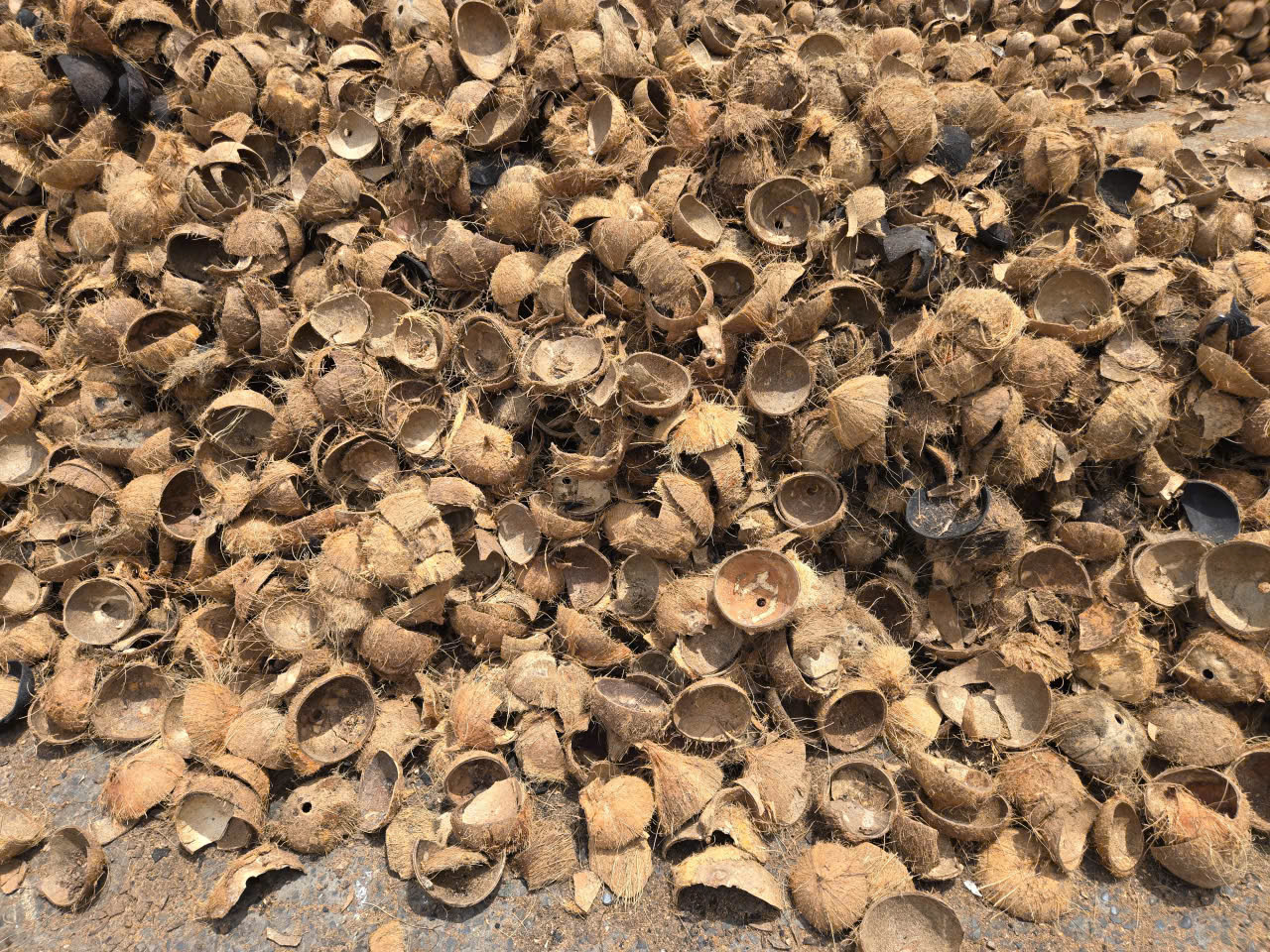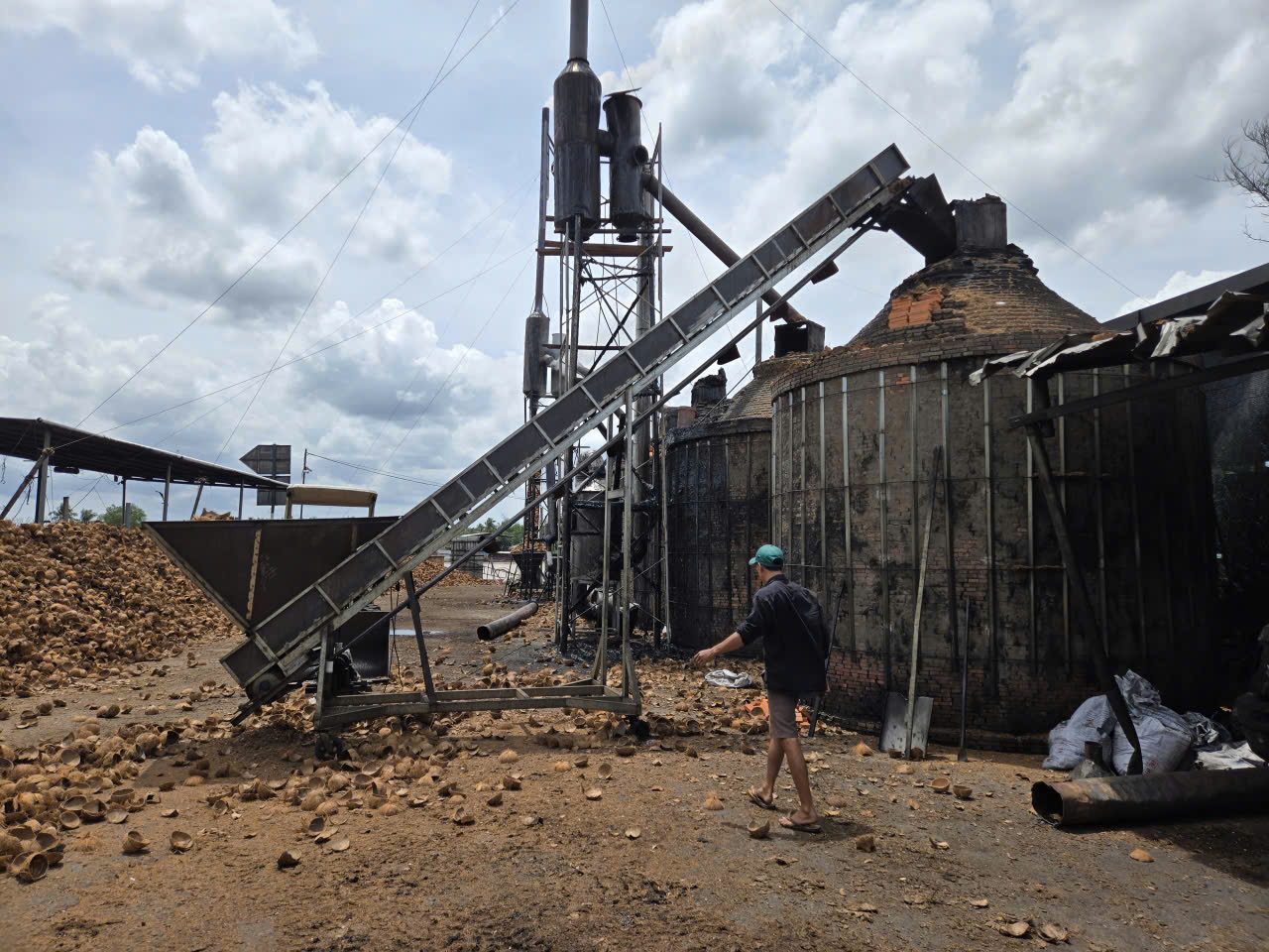 Trước khi đưa vào lò, gáo dừa cần được sấy để loại bỏ phần lớn độ ẩm. Tùy quy mô sản xuất, có thể phơi nắng tự nhiên từ 2 đến 3 ngày hoặc sấy bằng nhiệt ở 100 đến 120 độ C trong 6 đến 8 giờ. Giai đoạn này giúp gáo dừa cháy đều hơn, hạn chế sinh khói và nhựa khi vào lò đốt.