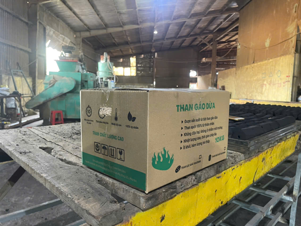 Than thành phẩm được đóng trong túi nilon, bao giấy Kraft hoặc thùng carton từ 5 đến 10 kg. Bao bì cần ghi rõ nguồn gốc, ngày sản xuất, loại than và hướng dẫn sử dụng. Sản phẩm nên được bảo quản ở nơi khô ráo, thoáng khí, tránh ẩm mốc để giữ chất lượng lâu dài.